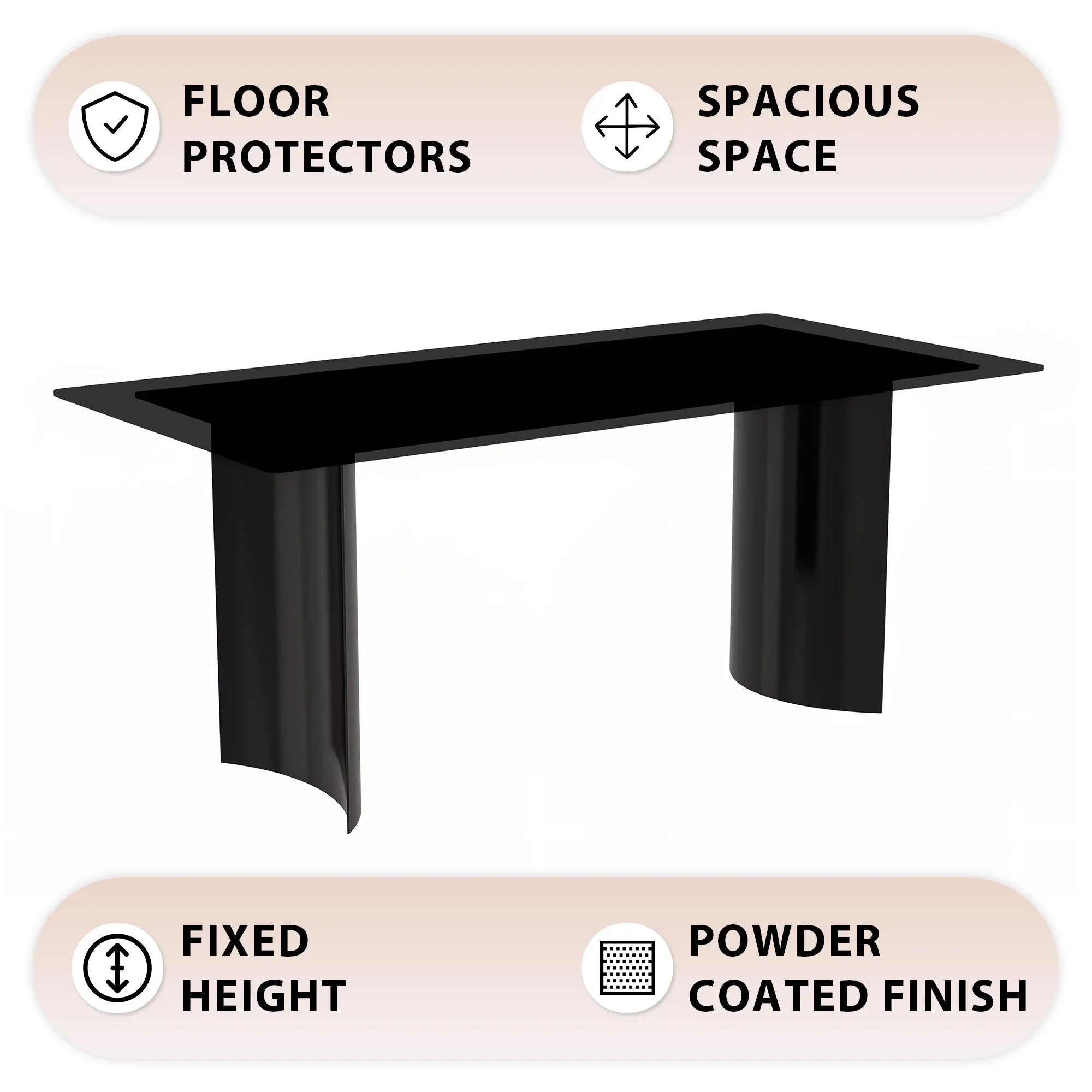 Elevate your dining space with the LeisureMod Zara Mid-Century Modern Rectangular Dining Table. Its timeless design combines sleekness and functionality, with a spacious tabletop available in glass or sintered stone, supported by curved stainless-steel legs for durability and charm. Perfect for any occasion, it provides stability and sophistication for intimate dinners or casual gatherings.