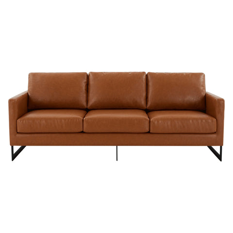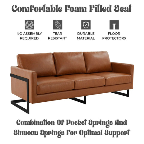 A blend of modern design and comfort. With sleek straight edges, geometric legs, and upholstery in leather, it suits any decor. Enjoy soft cushions, built-in armrests, a sturdy stainless-steel base, and protective floor pads. Ideal for living rooms, offices, and lounges, it offers ultimate comfort and durability. Easy to maintain and arrives fully assembled for immediate use.