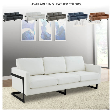 Lincoln 3-Seater Sofa Upholstered in Leather with Black Stainless Steel Frame