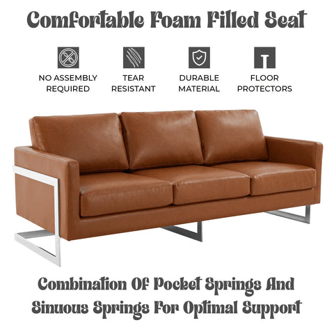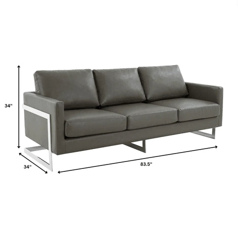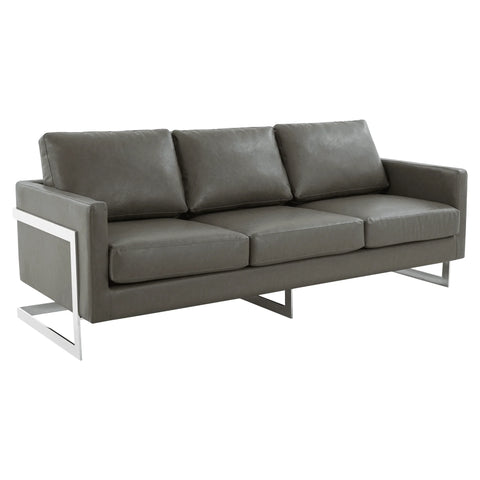 Lincoln 3-Seater Sofa Upholstered in Leather with Chrome Stainless Steel Frame