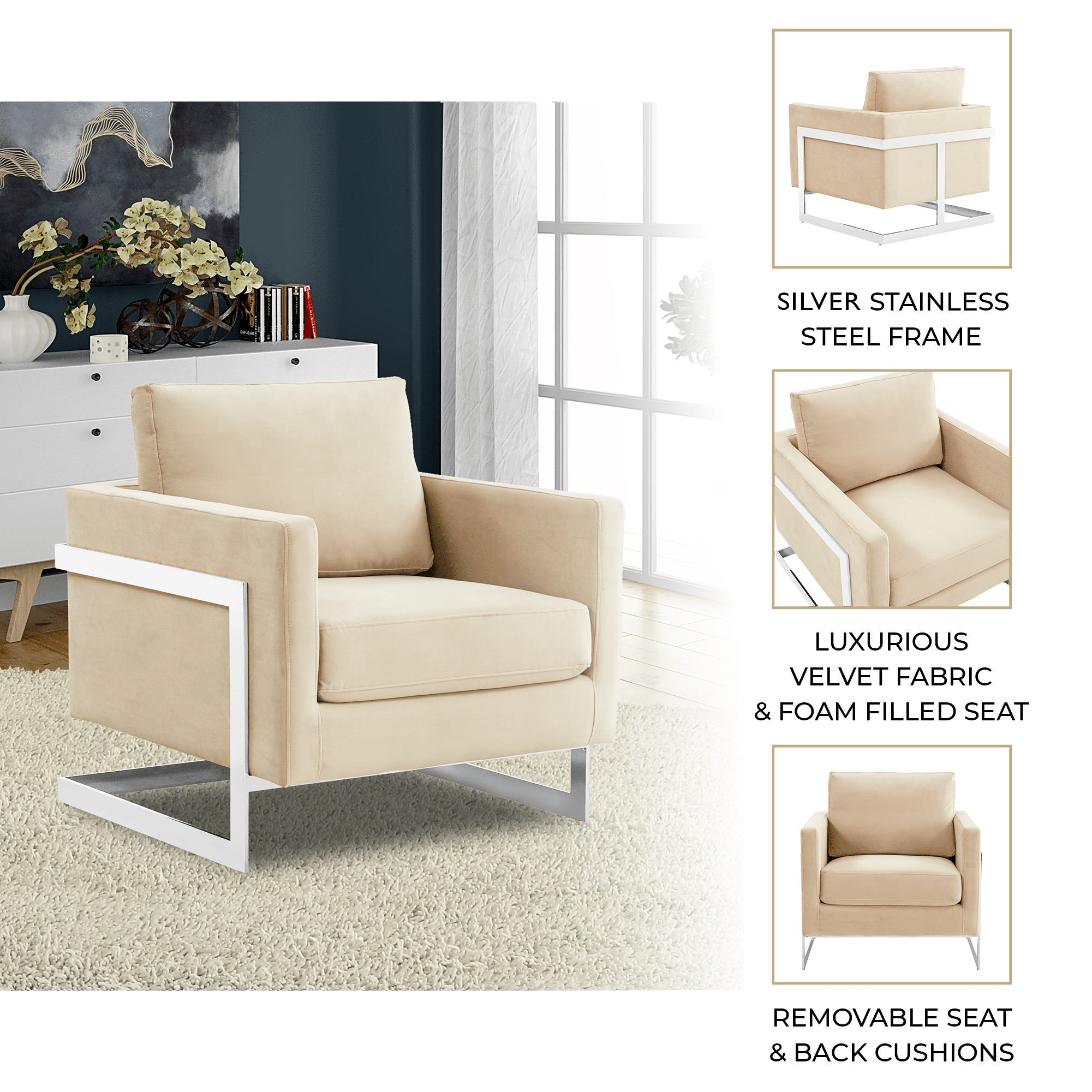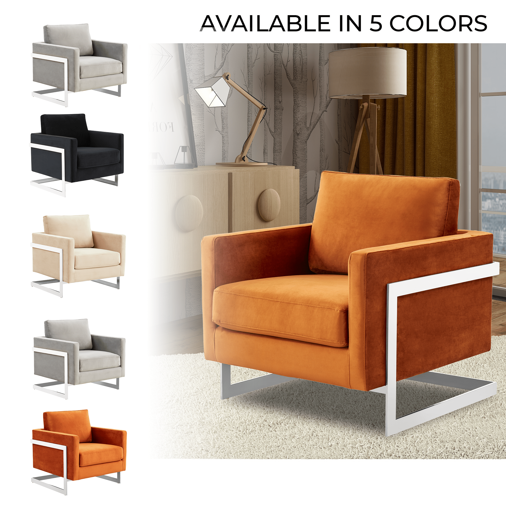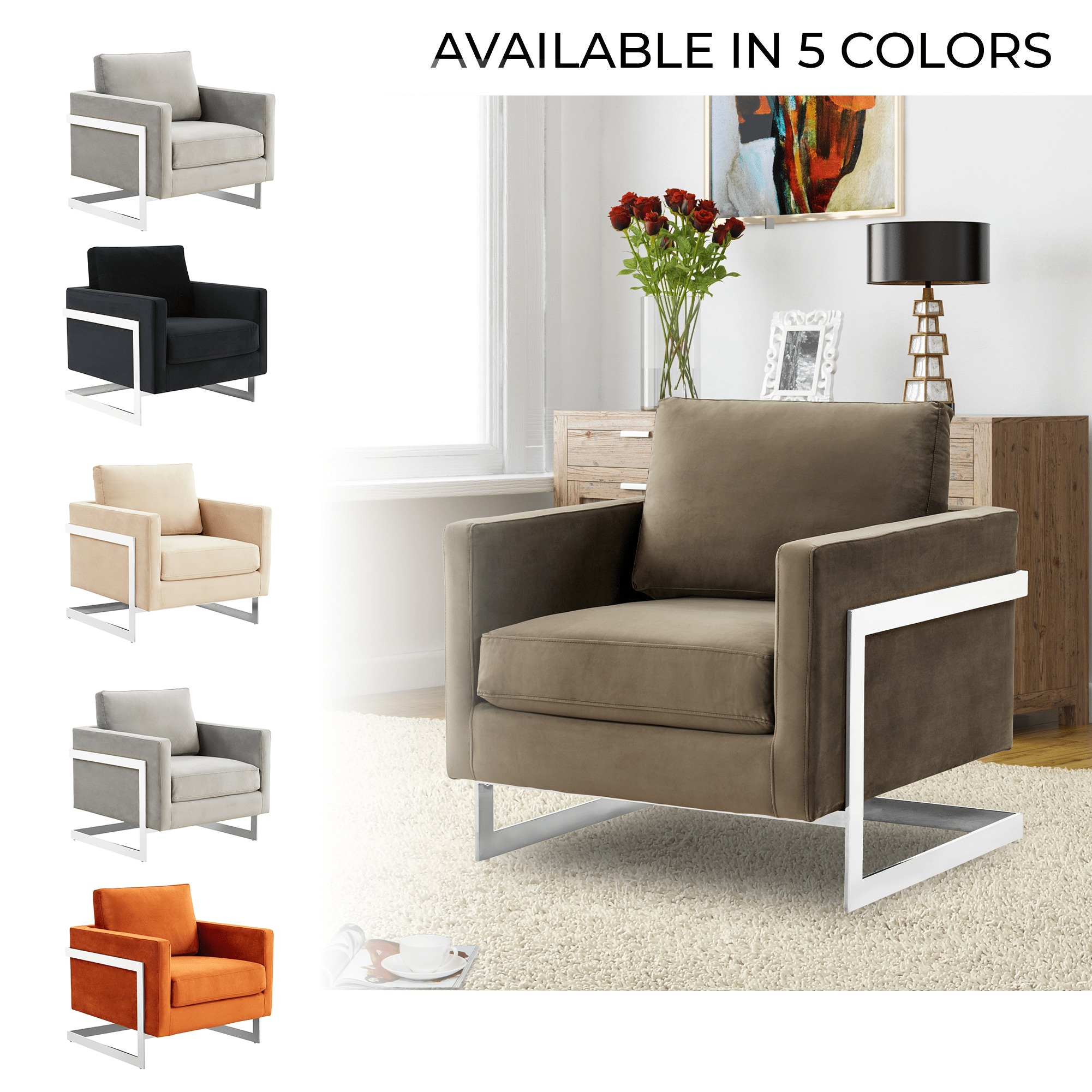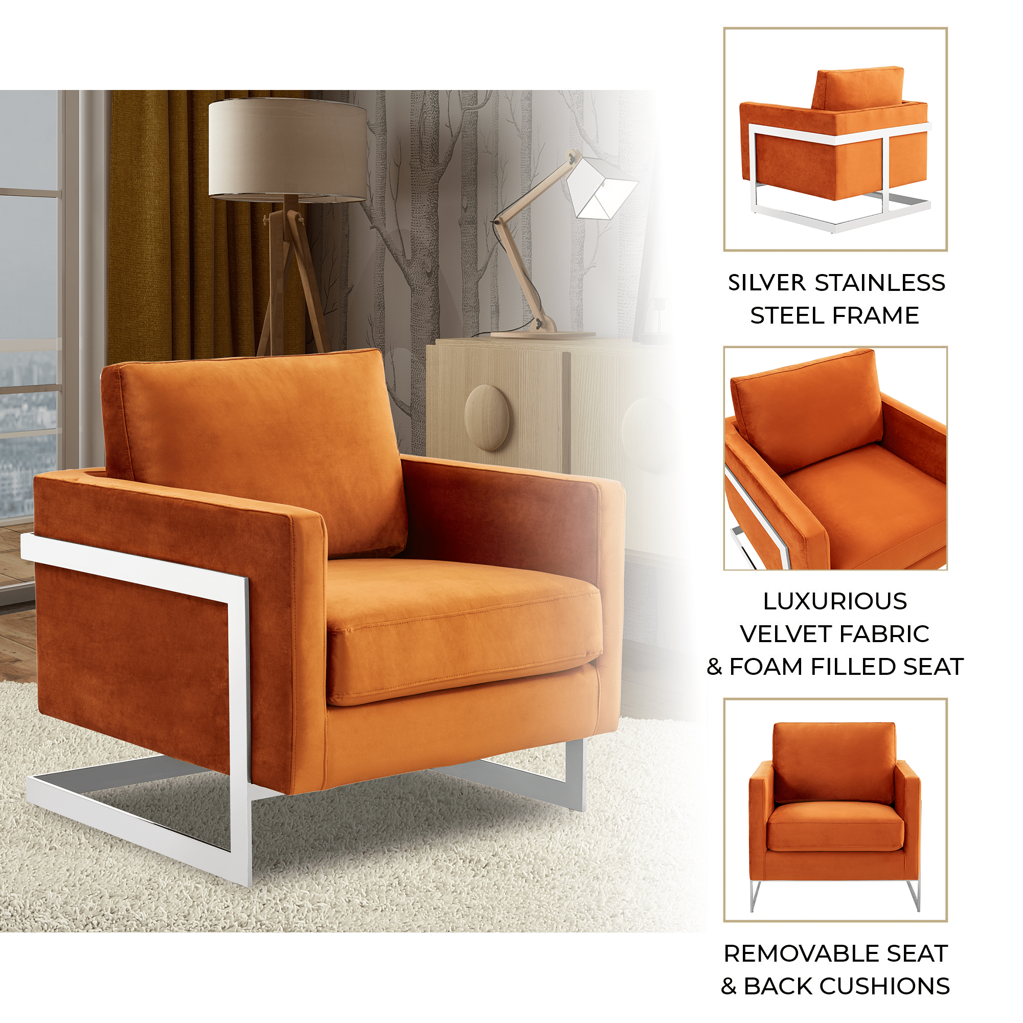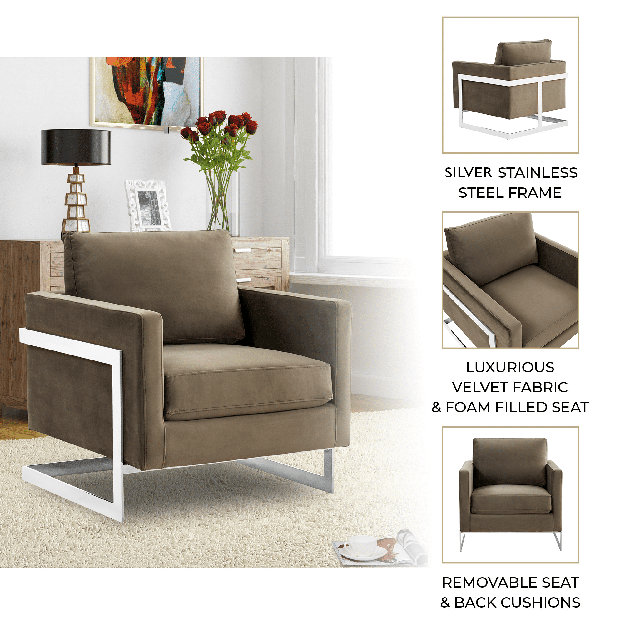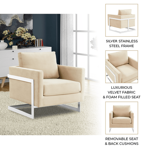 Lincoln Velvet Accent Armchair Singe-Seater Sofa with Chromed Stainles – Elax Furniture Skip to content