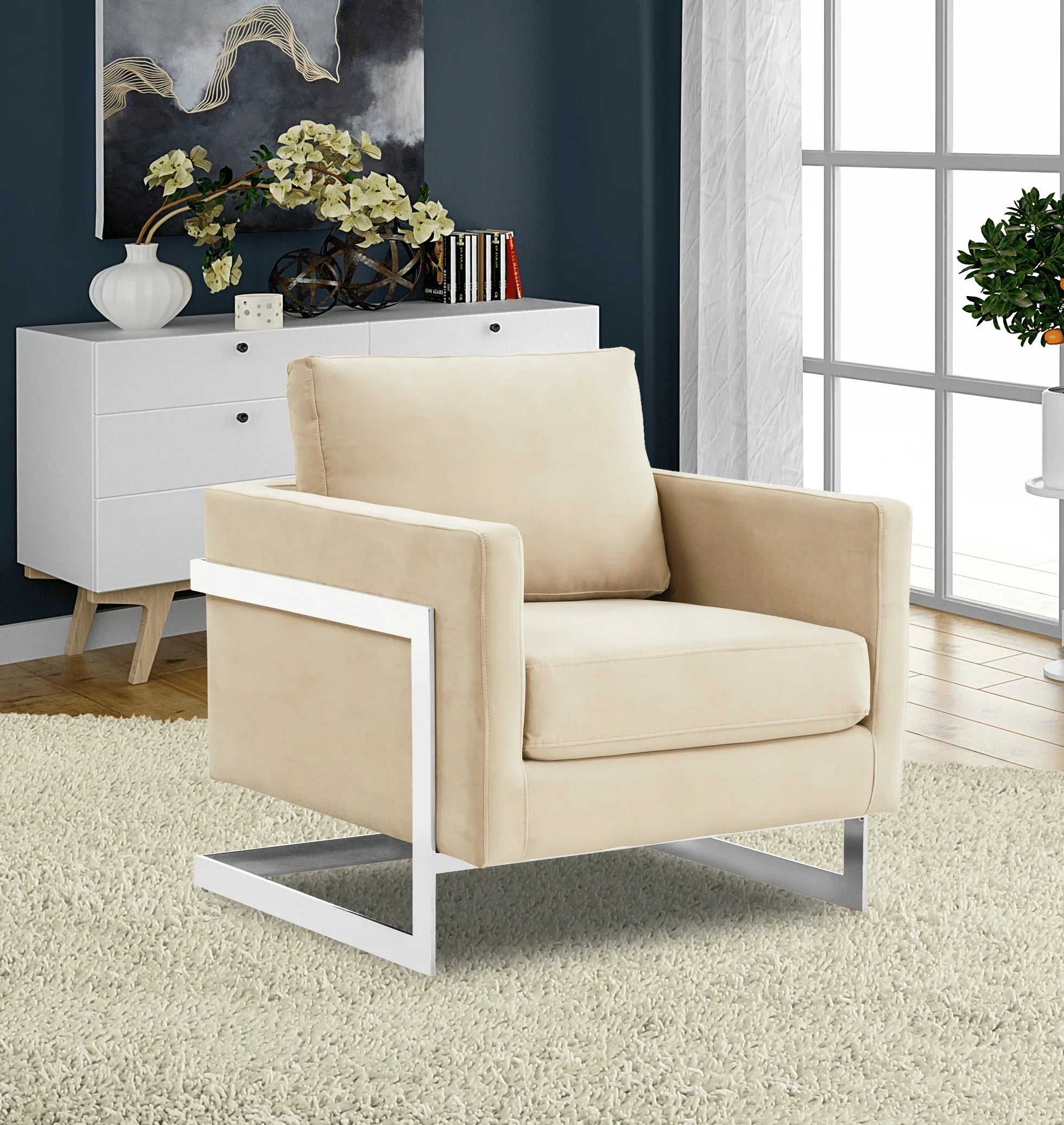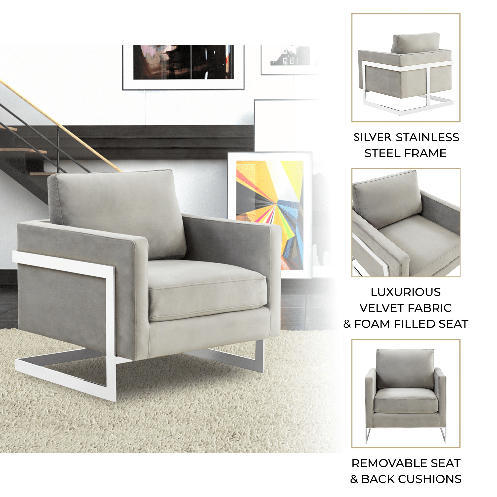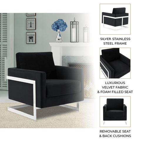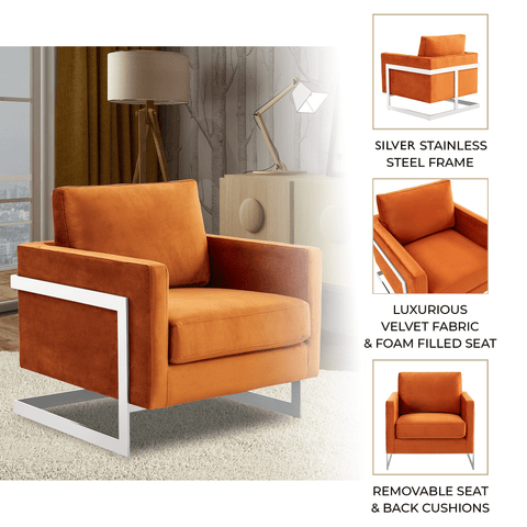 Lincoln Velvet Accent Armchair Singe-Seater Sofa with Chromed Stainless Steel Frame