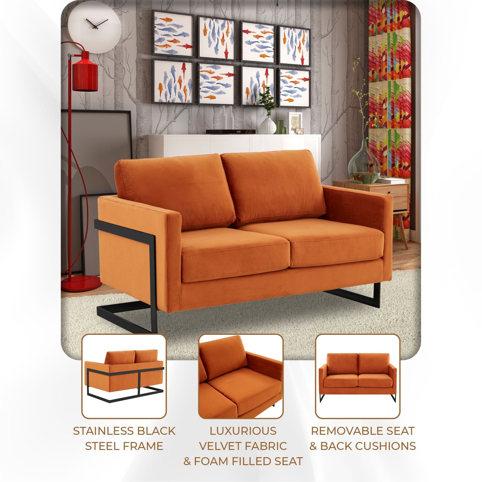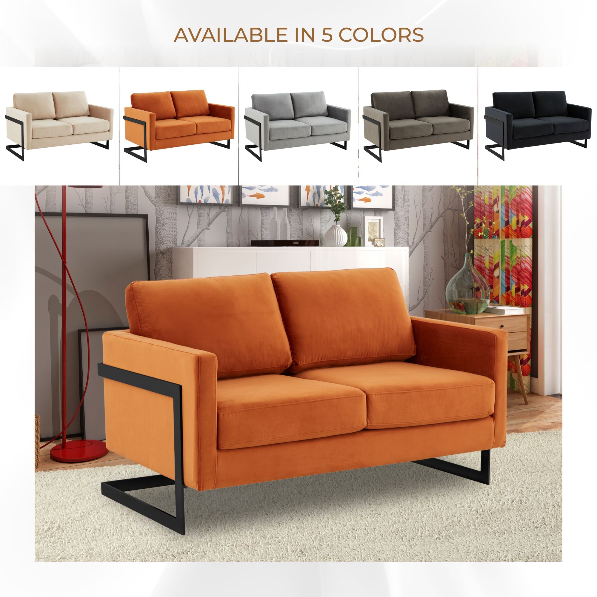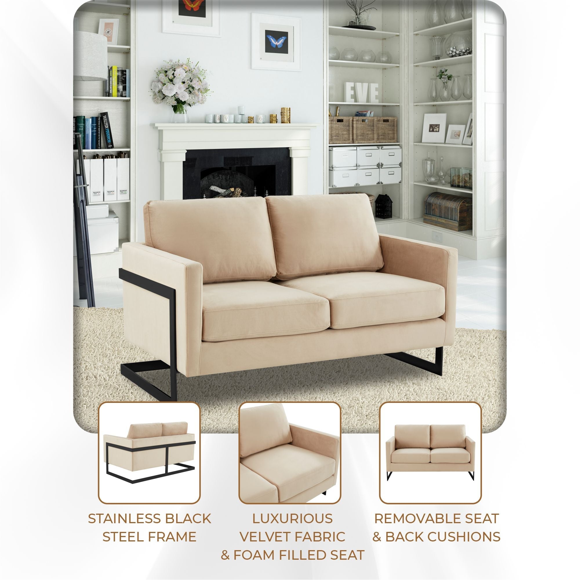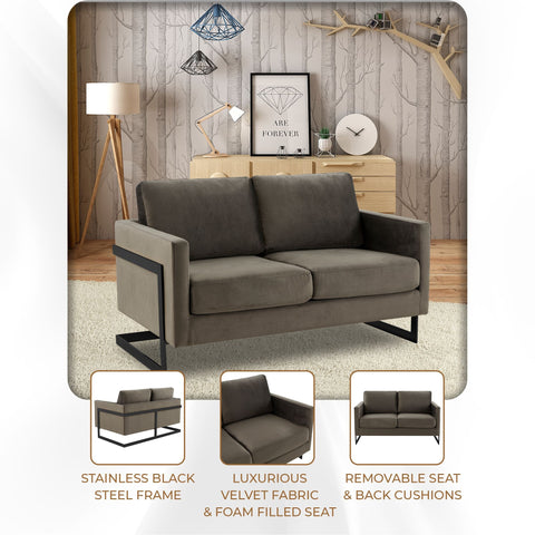 Lincoln Velvet Loveseat Sofa with Black Stainless Steel Frame – Elax Furniture Skip to content