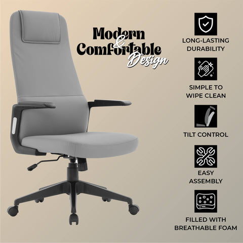Upgrade your office setup with the Nexa High-Back Office Chair. Designed for ultimate comfort and support during long working hours, this chair features a padded headrest and adjustable height to reduce neck strain. Its ergonomic swivel and tilt functions, sturdy base, and smooth mobility make it a practical and stylish addition to your workspace. Assembly is required, but easy-to-follow instructions are included.