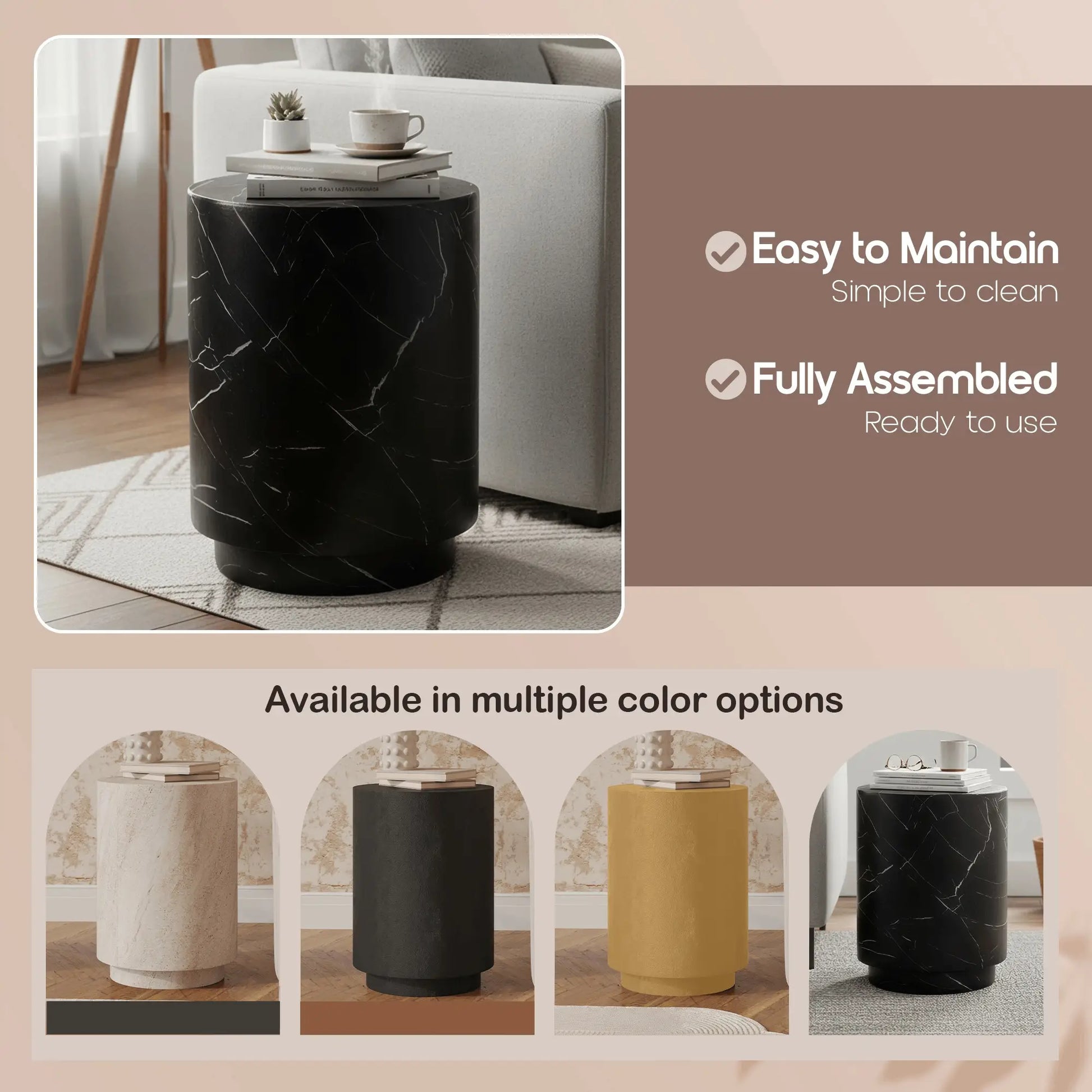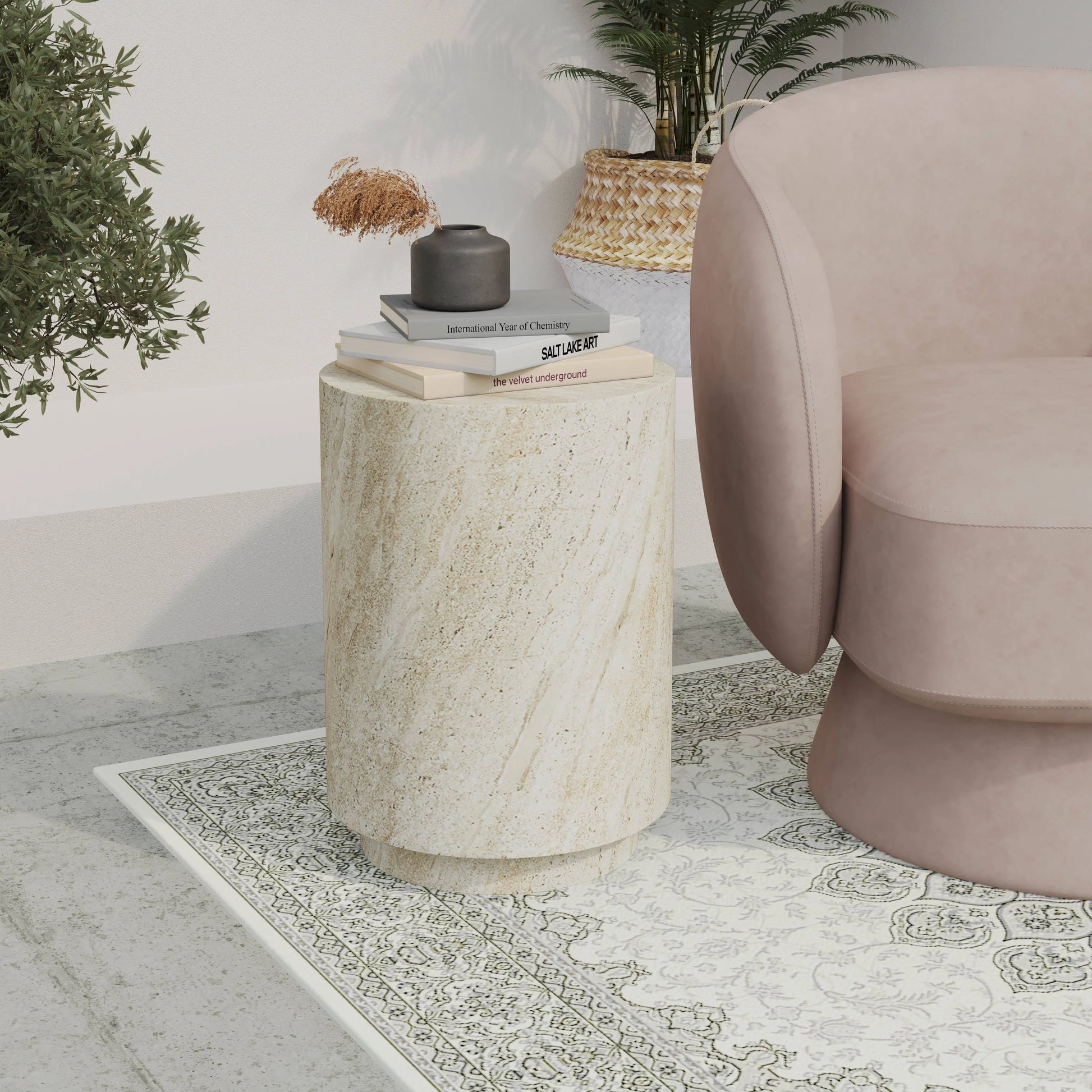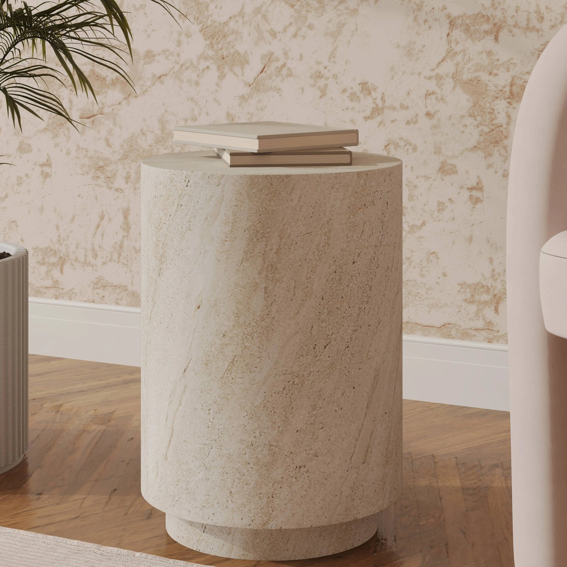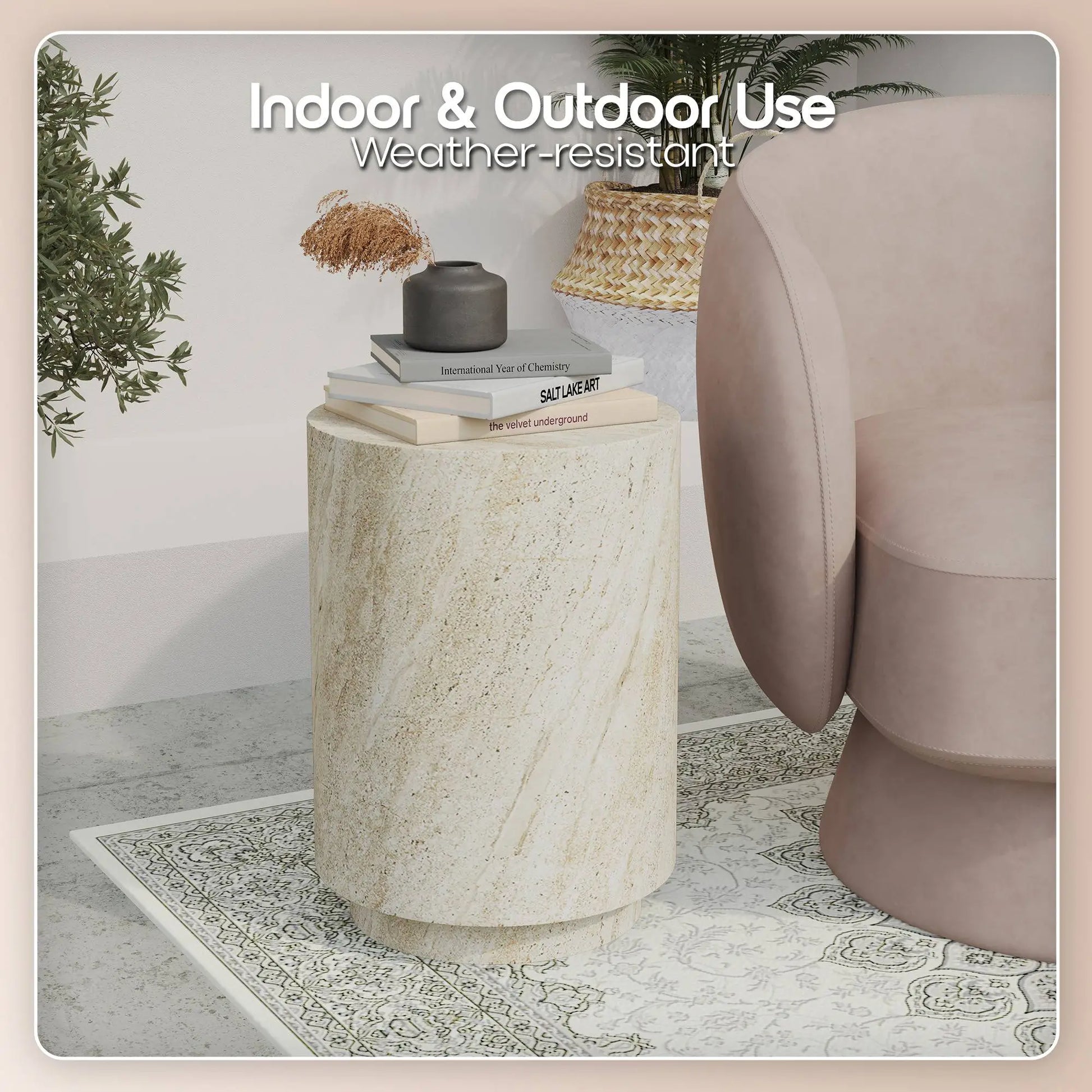 Add a touch of modern elegance with the LeisureMod Ramble Round Side Table, a striking fusion of minimalist design and functional durability. Its smooth, cylindrical shape and tapered base create a sleek profile that brings a sophisticated vibe to any room or outdoor setting. Crafted from durable fiberstone, this table supports everything from books to decorative accents and is available in two stunning finishes—natural travertine with organic stone patterns, or a refined, painted surface for a clean look. Built for both indoor and outdoor use, it withstands sunlight, rain, and temperature changes with ease. Compact yet versatile, the table’s 18-inch height makes it ideal as an end table, plant stand, or accent piece in smaller spaces. With easy maintenance and no assembly required, it’s ready to bring style and functionality wherever you need it.