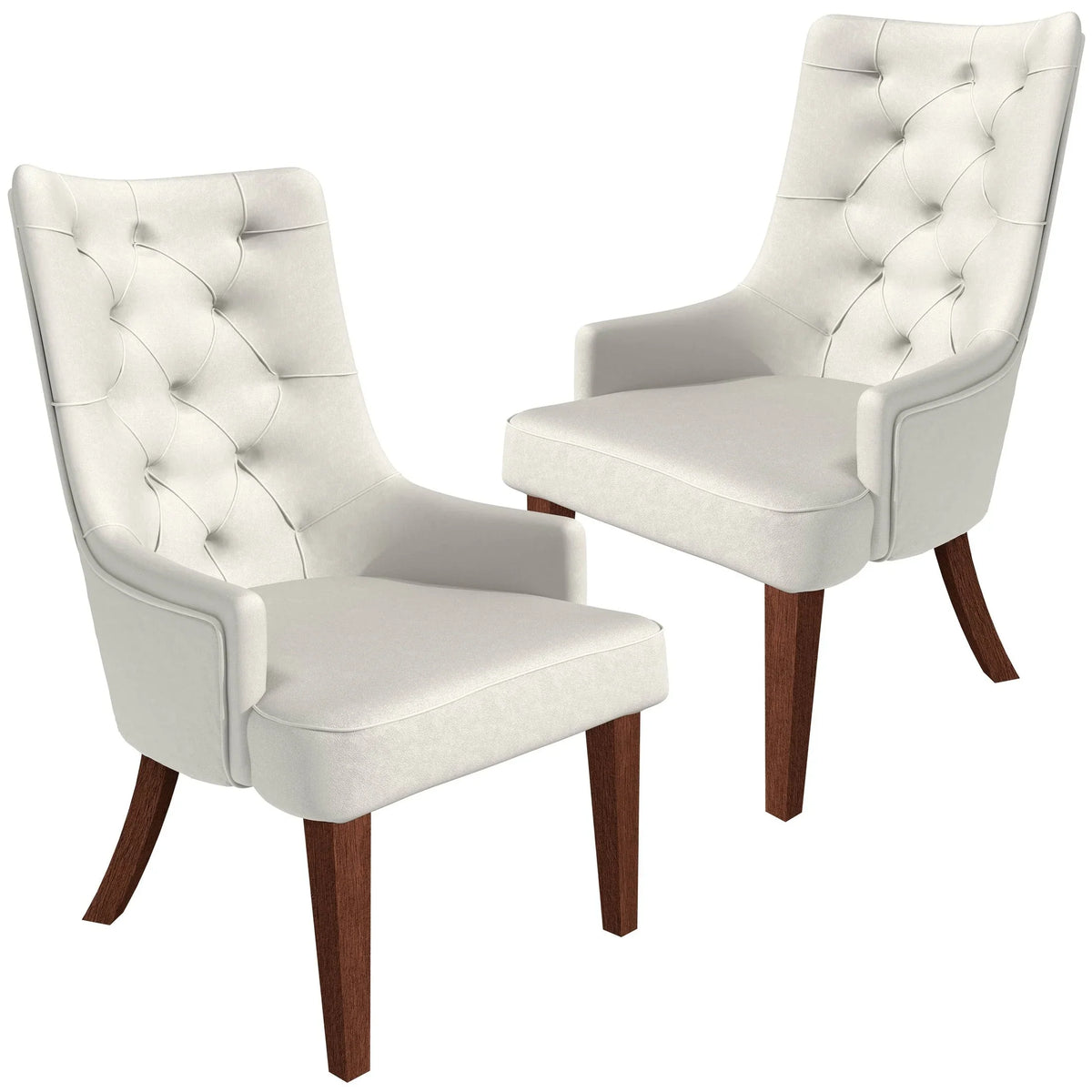 Spruce Collection Modern Wooden Dining Chair in Beige Velvet Set of 2