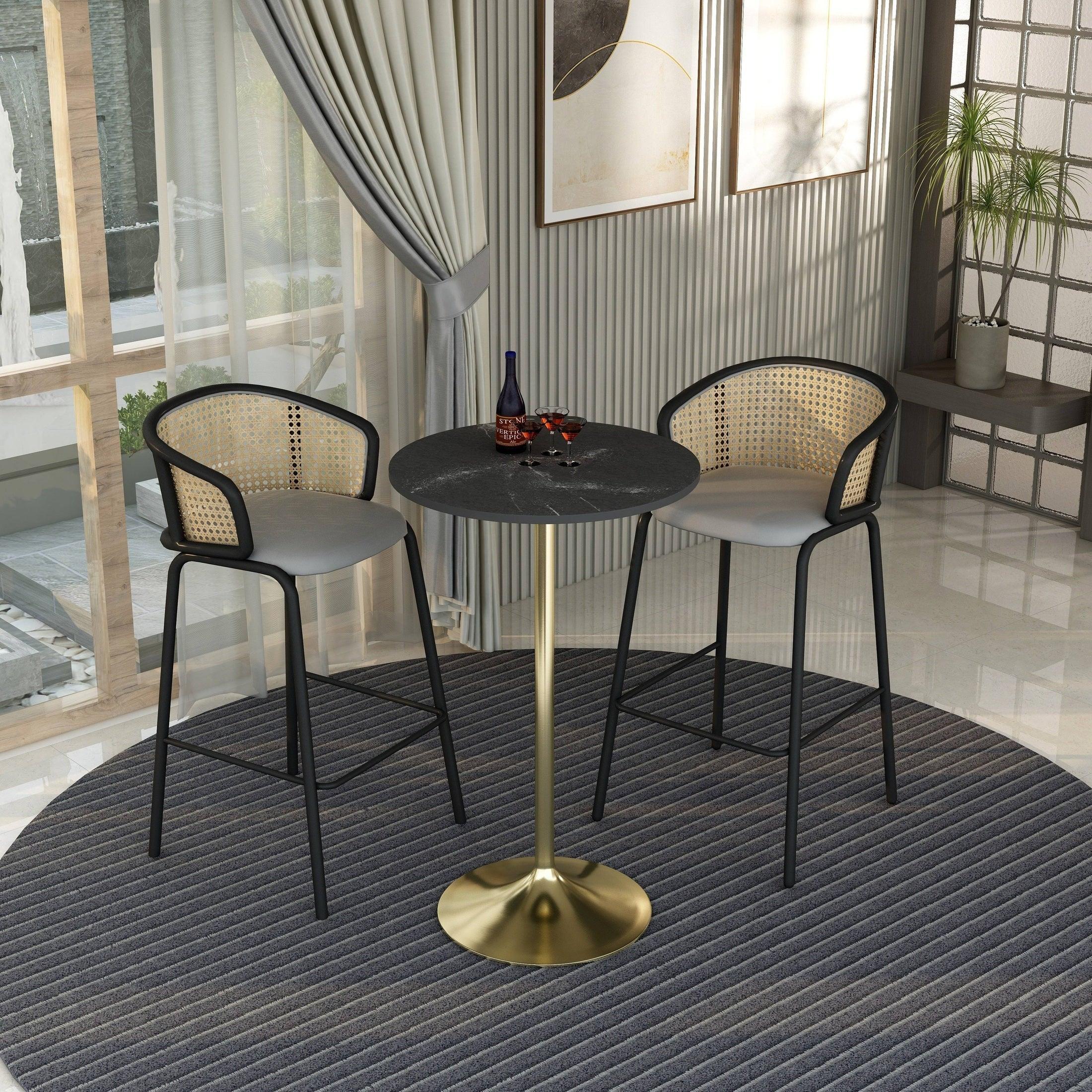 Verve Bar Height Dining Table with 27" Round MDF Top and Gold Stainless Steel Pedestal Base