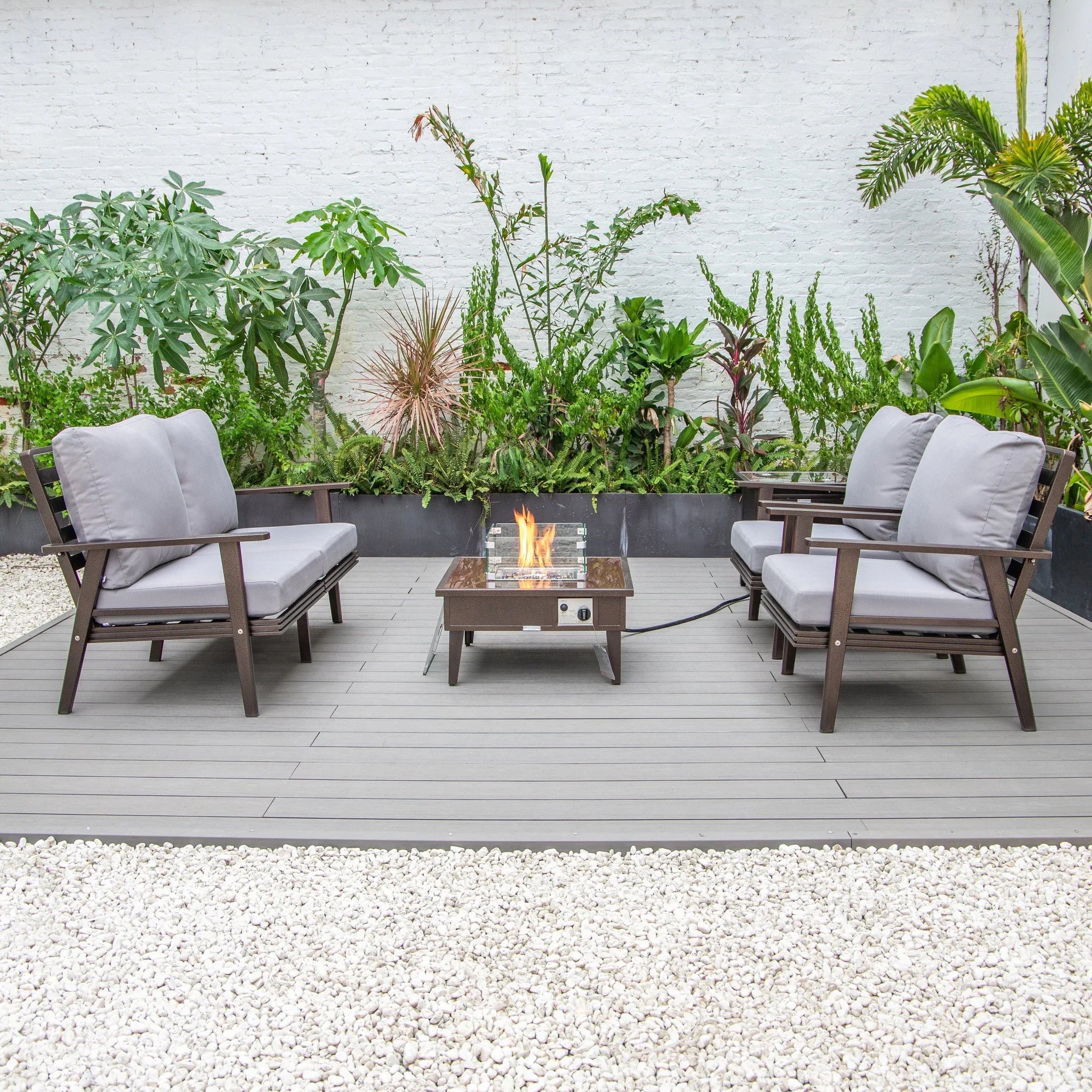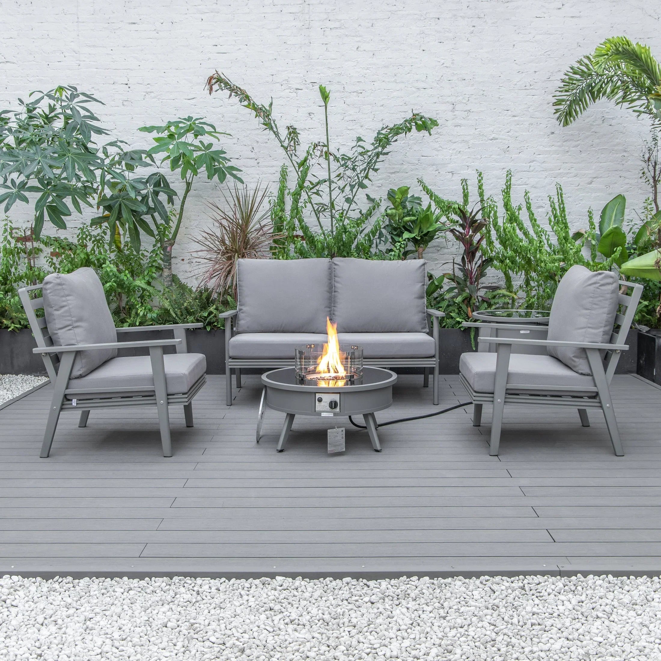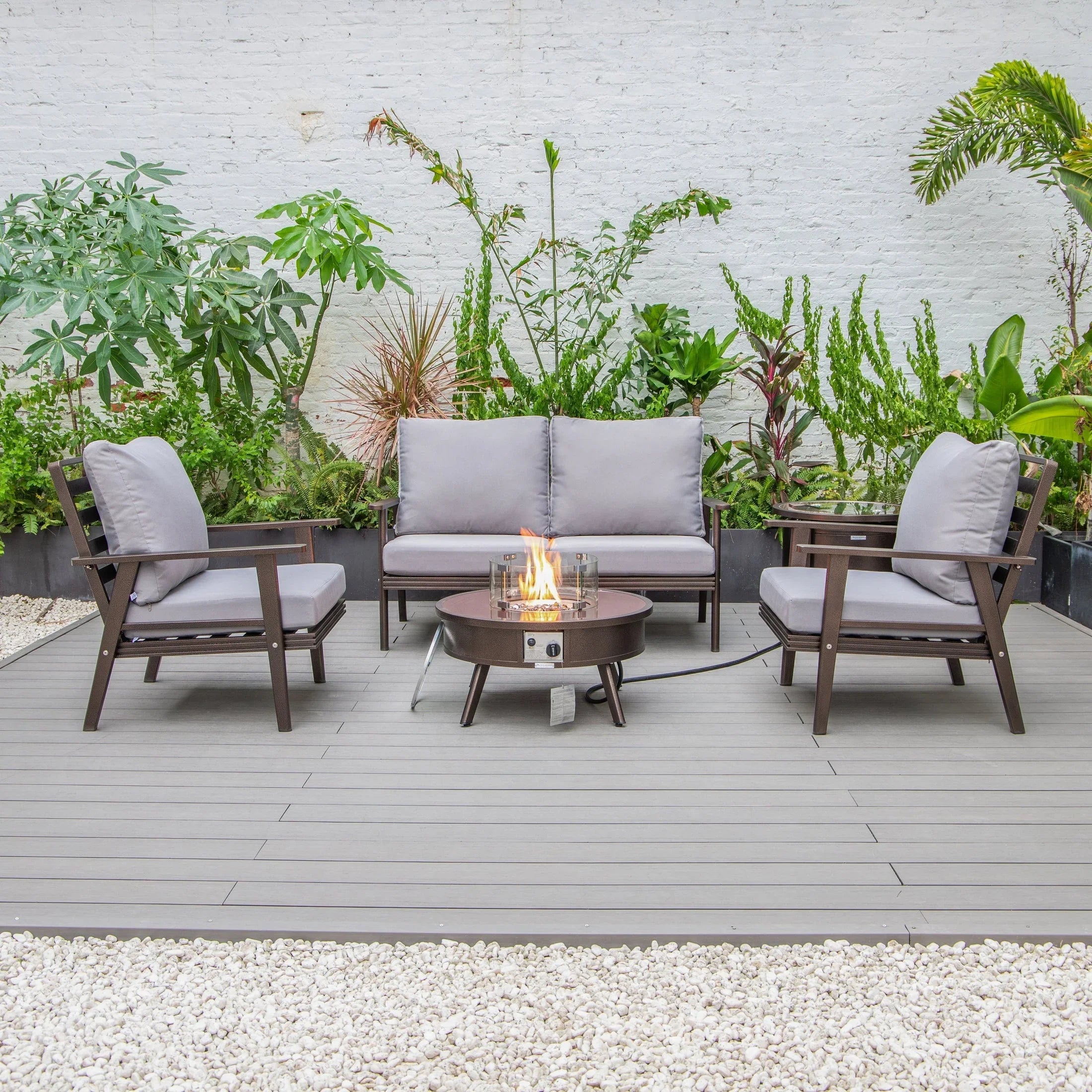 Walbrooke Aluminum Patio Conversation With Fire Pit Table & Tank Holde – Elax Furniture Skip to content