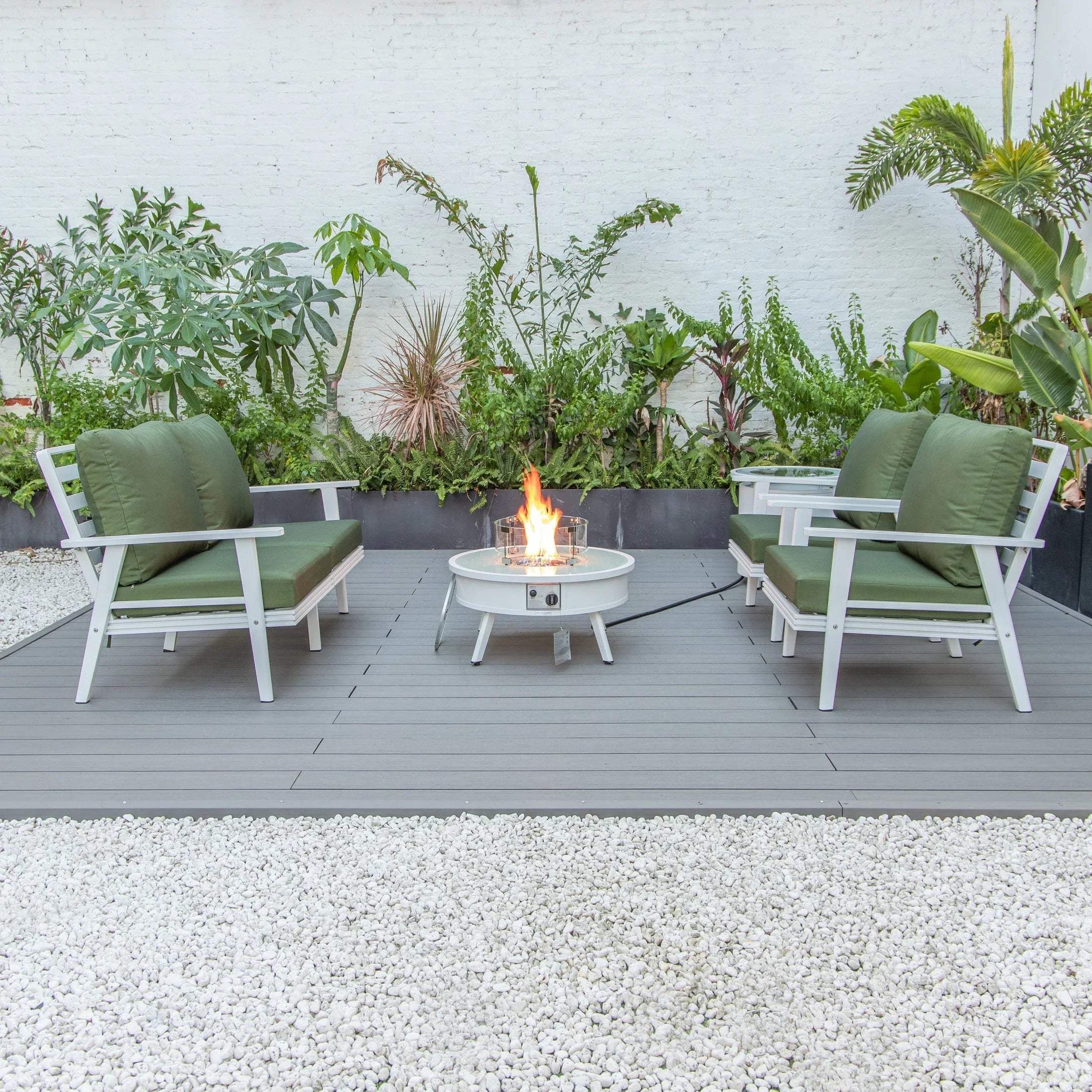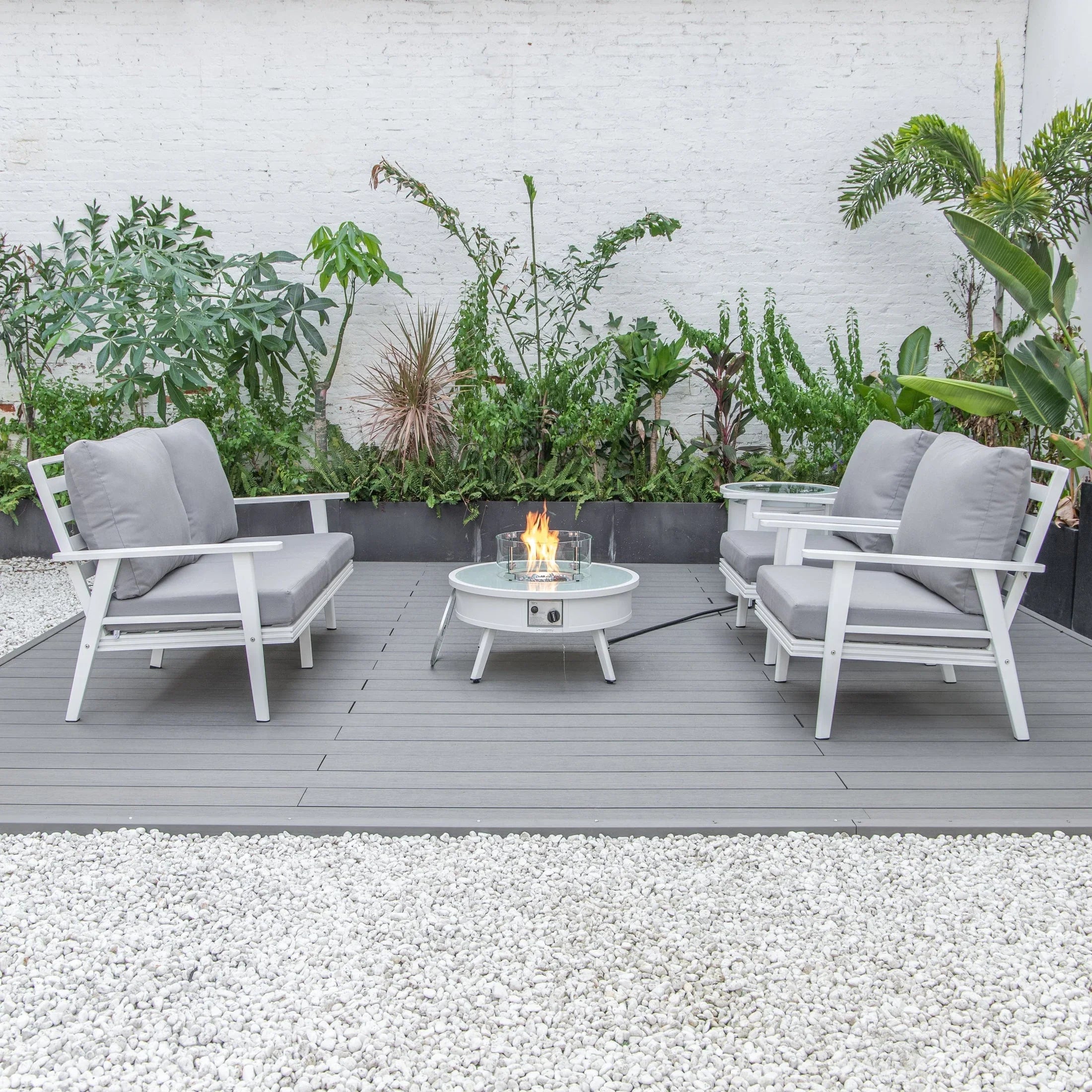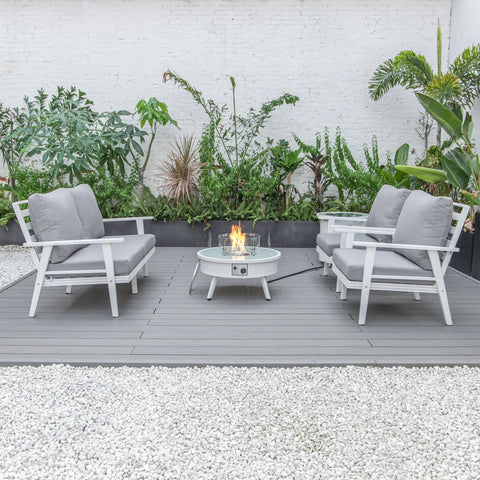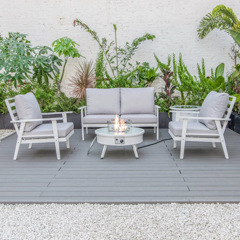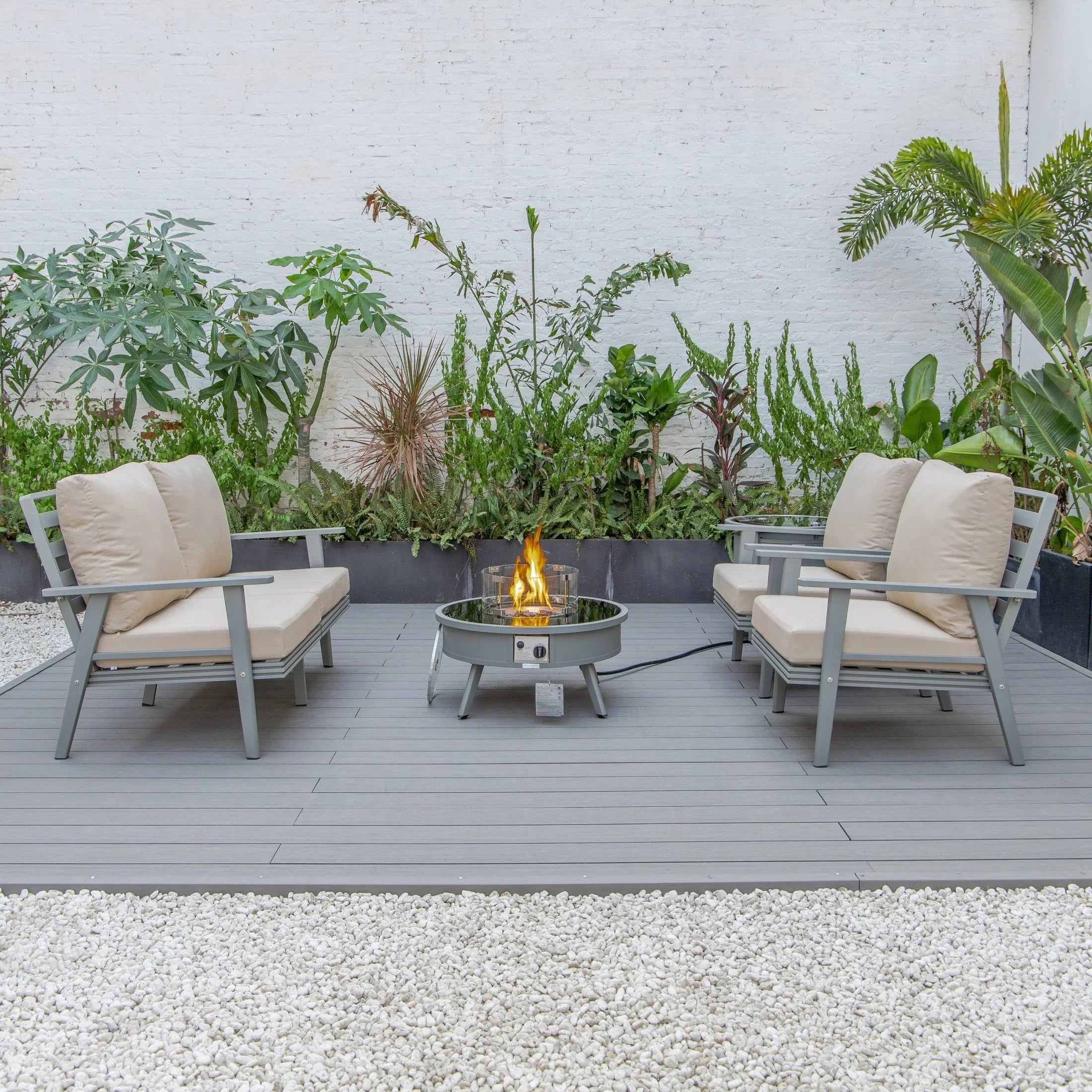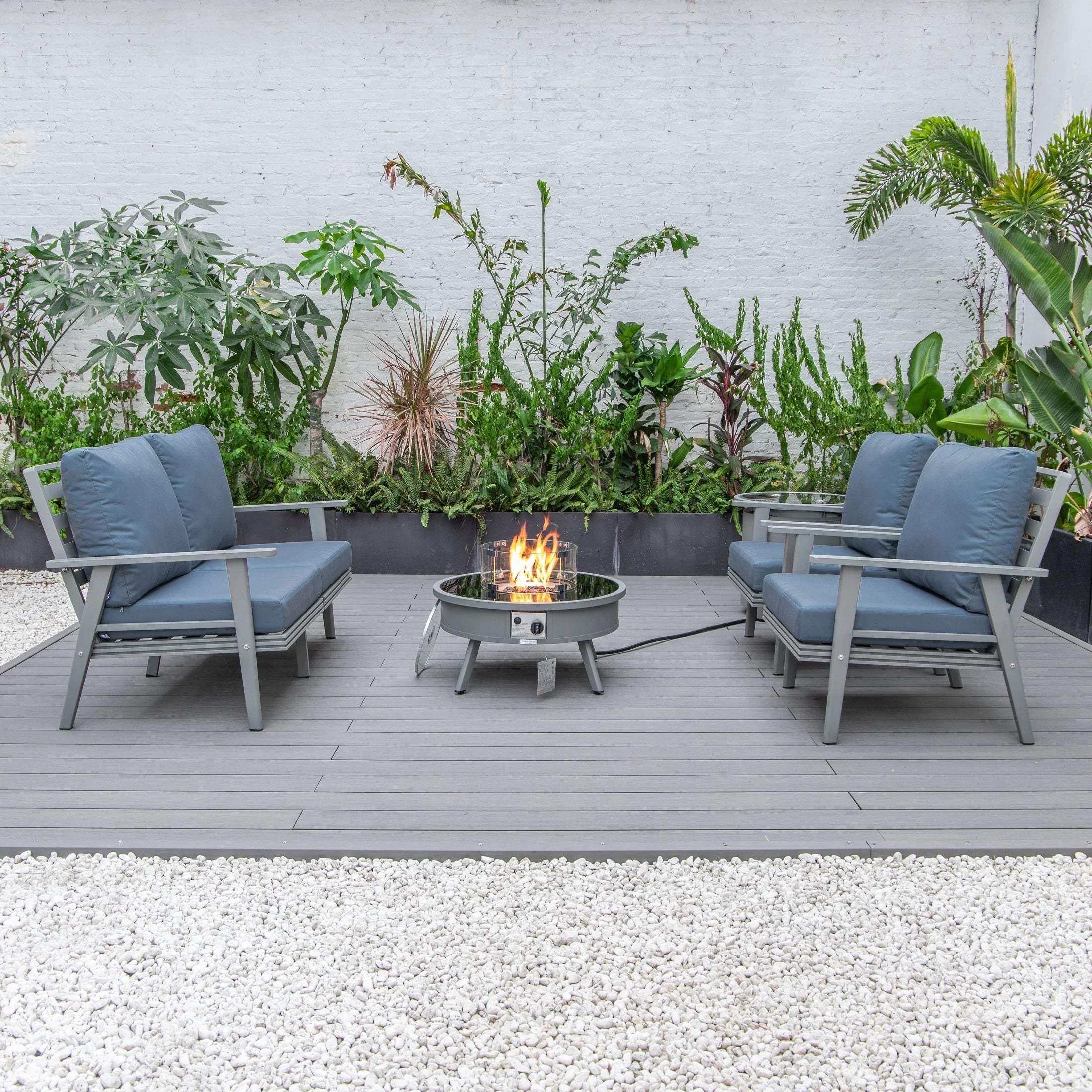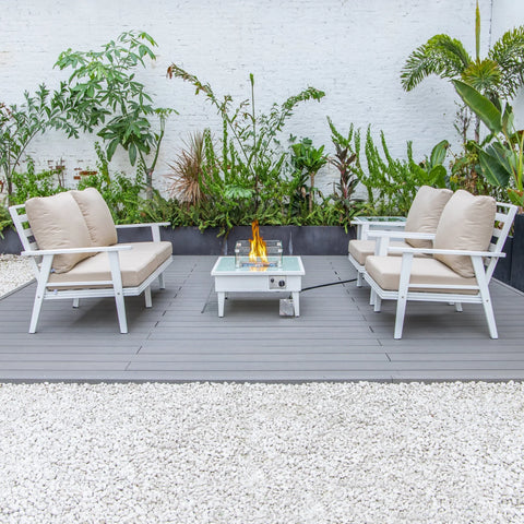 Transform your backyard into a cozy oasis with the Walbrooke Aluminum Patio Conversation set. Invite friends over for cocktails around the fire pit table, while enjoying the comfort of super-soft, cotton-filled cushions. Made with weather-resistant, powder-coated aluminum, this set is built to last and adds a touch of modern style to any outdoor space. Fits up to 4 adults comfortably.